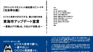 エピソード4 エピソード4/東海市アップデート宣言 <2026年3月22日より、連載します> 〔秘伝書④〕「社会奉仕。エピソード4/ビジネス思考でUPDATEする、僕らの街の未来 東海市アップデート宣言 ~言葉より「行動」を。口先より「成果」を~」 目次【4a】 ... 2025.10.13 エピソード4秘伝書★